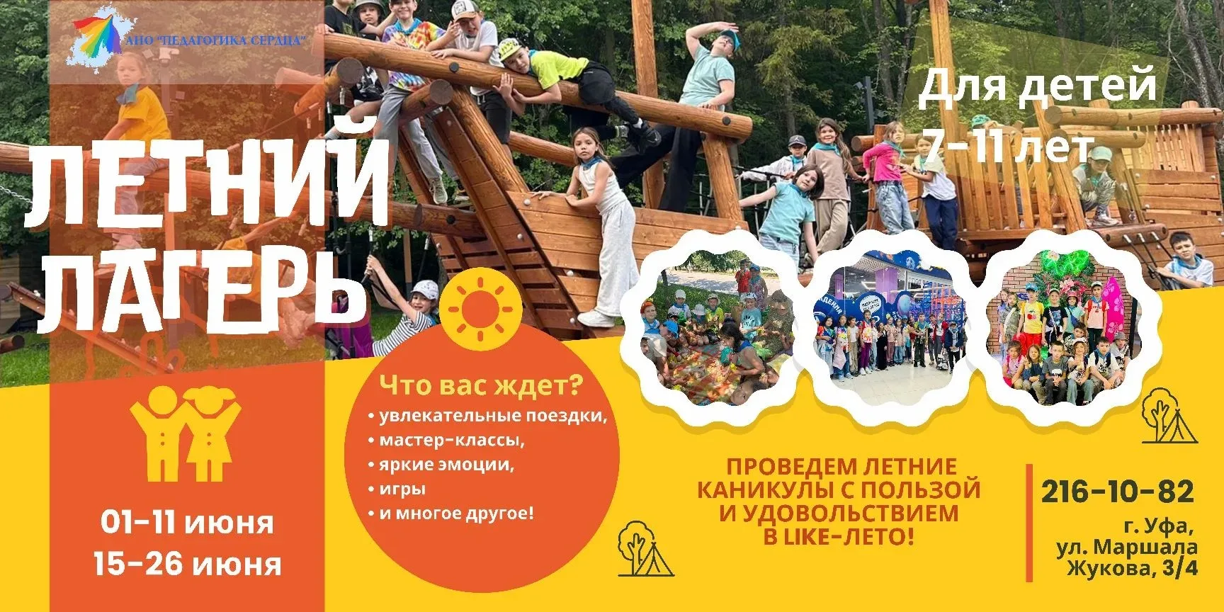 Уважаемые родители! Лето — время отдыха, открытий и роста. Мы предлагаем вашему ребенку провести его ярко, насыщенно и с максимальной пользой. Наш дневной лагерь — это пространство, где дети смогут отдохнуть от цифровой рутины, зарядиться энергией живого общения и погрузиться в мир настоящих приключений и творчества.